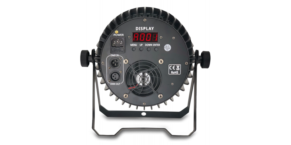 Possui uma caixa de alumínio fundido preto, com 3 entradas e saídas XLR para o sinal DMX. Inclui um suporte multifuncional que oferece uma ampla variedade de opções de montagem.