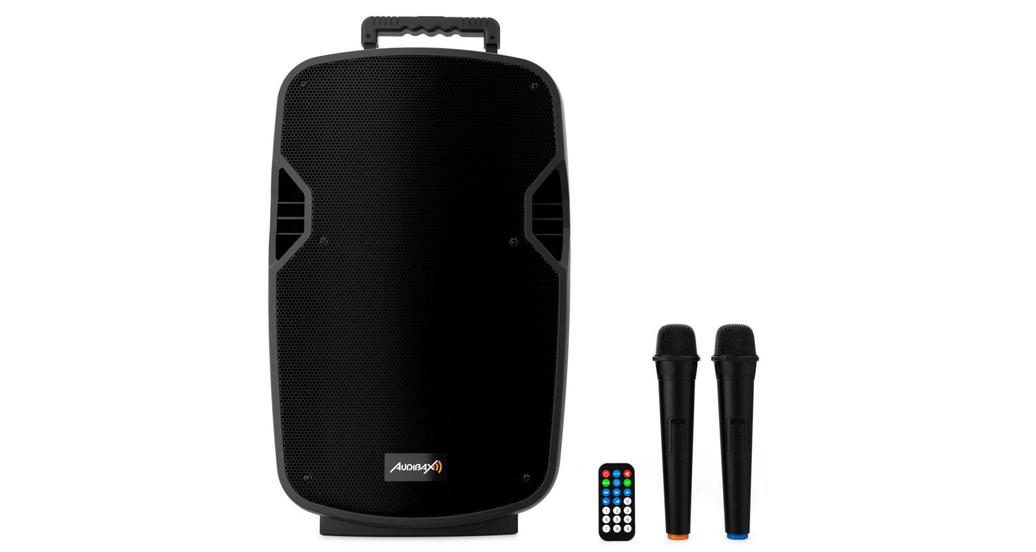 Sistema de PA portátil com 2 microfones sem fio VHF Reprodutor de mp3, Entrada USB/SD Ecrã LCD conexão bluetooth Ativo, woofer de 12" + motor de titânio de 1,5" Resposta de frequência: 58Hz-20kHz Sensibilidade: 93 db Impedância: 8 OHM Potência: 100W RMS 200W de pico Amplificador: Classe-D Controle de pré-amplificador Controle de volume do microfone controle de eco EQ: agudos, médios, graves Controle de volume principal Entrada de microfone: XLR e jack de 3,5" Entrada de linha: XLR e RCA Saída de linha: XLR e jack 6.35 2 x microfone sem fio VHF (frequências 191,50Mhz e 194,50Mhz) 2 x Antena Controle de volume A e B DC 12V, pode ser carregado no carro, fusível de proteção da bateria Inclui bateria recarregável, ao usar energia CA, a bateria será carregada automaticamente