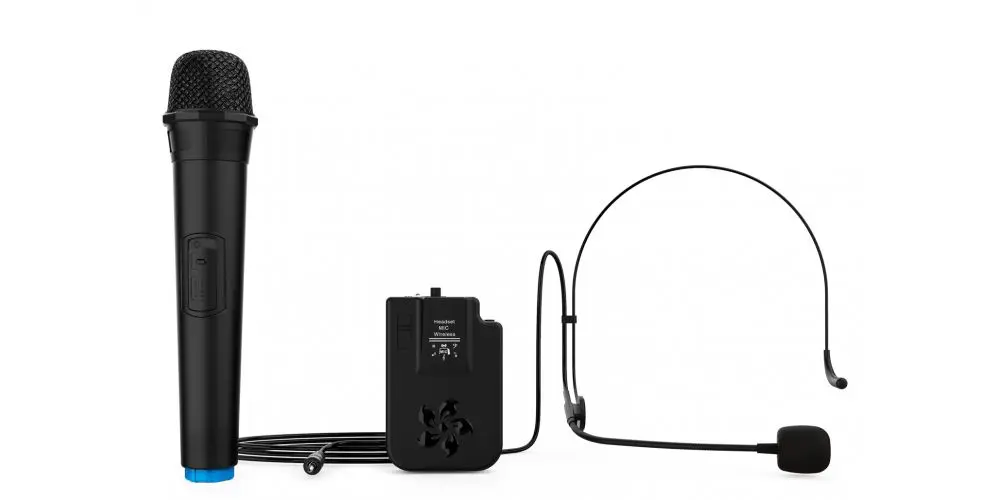 Eles incluem 1 microfone sem fio + 1 microfone de fone de ouvido, com volume e eco separados, para cantar em suas festas ou falar em suas apresentações.