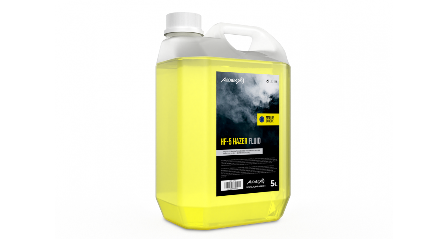 O líquido turvo Audibax HF-5 é especialmente formulado para uso em máquinas de neblina e fumaça, garantindo efeitos visuais surpreendentes e seguros graças à sua composição eficaz. Este produto é ideal para diversas aplicações profissionais, incluindo entretenimento, palco, televisão, boates e efeitos especiais. A fórmula exclusiva desenvolvida é totalmente segura e adequada para um amplo espectro de usuários, pois não contém aroma, é atóxica e não irritante. Além disso, gera uma névoa envolvente de alta qualidade sem deixar resíduos gordurosos. Seu design de alta qualidade e fórmula confiável fazem deste fluido haze uma excelente escolha para obter efeitos visuais excepcionais em qualquer ambiente profissional.