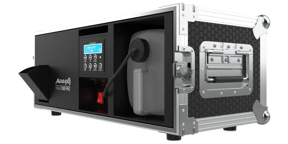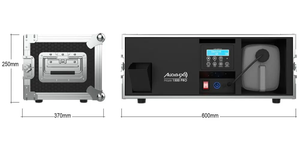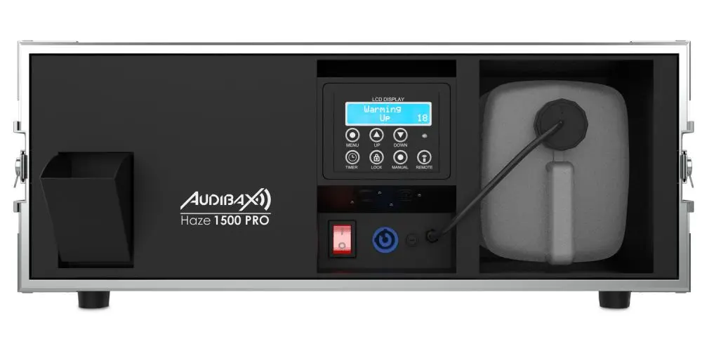 O Audibax Haze 1500 Pro é uma máquina de fumaça profissional com efeito neblina que gera uma fina cortina de neblina, tornando-a a escolha ideal para dar aos seus eventos e shows um visual único. Nossa máquina de neblina Haze 1500 Pro é equipada com um tanque com capacidade de 3,1 L e seu tempo de aquecimento é de 2 minutos. No modo autônomo, tanto a saída quanto a velocidade do ventilador são ajustáveis. Após o tempo de aquecimento inicial, a saída é contínua. Ele funciona com precisão no modo DMX, modo autônomo e saída regular. Especificações