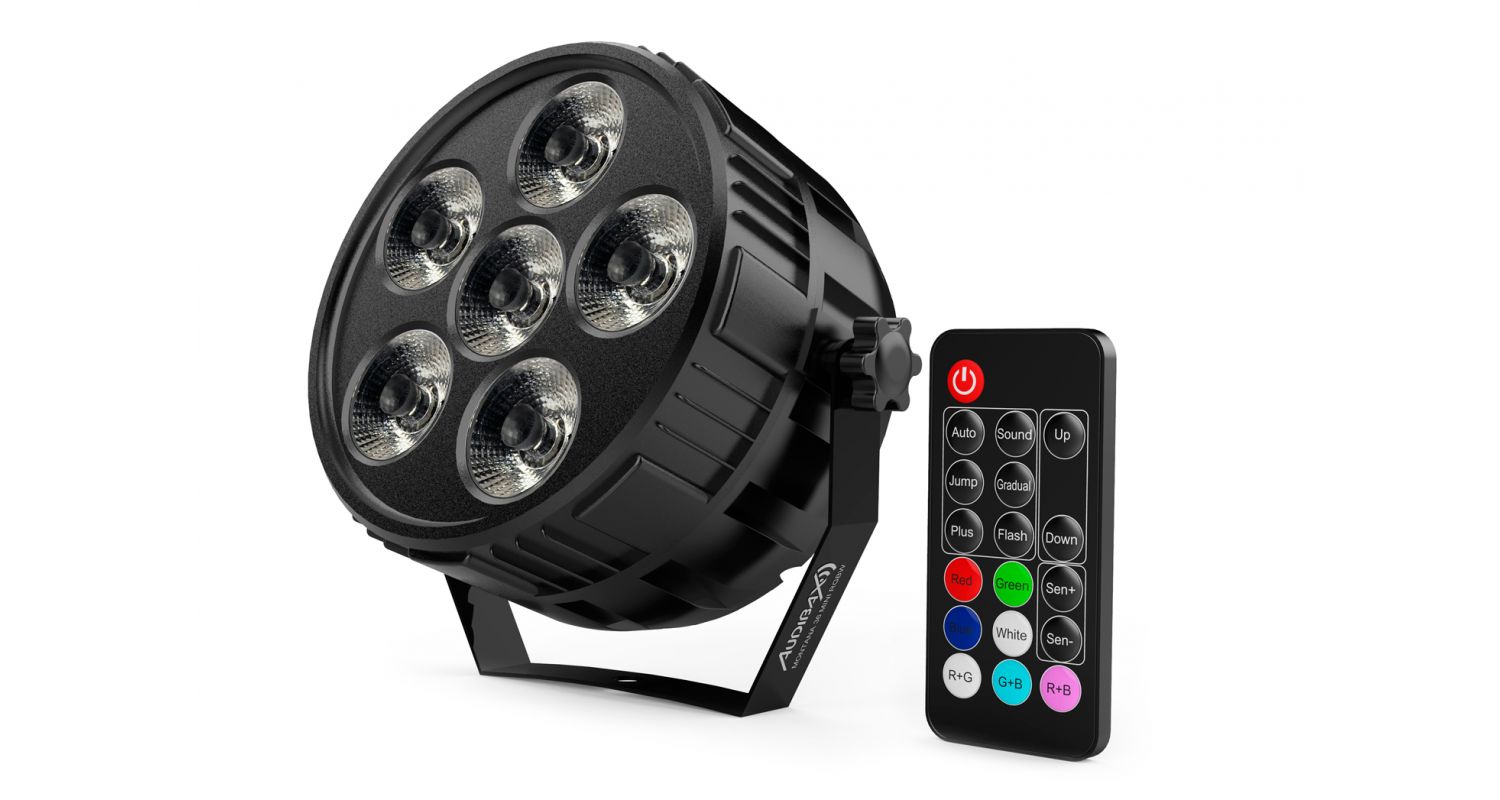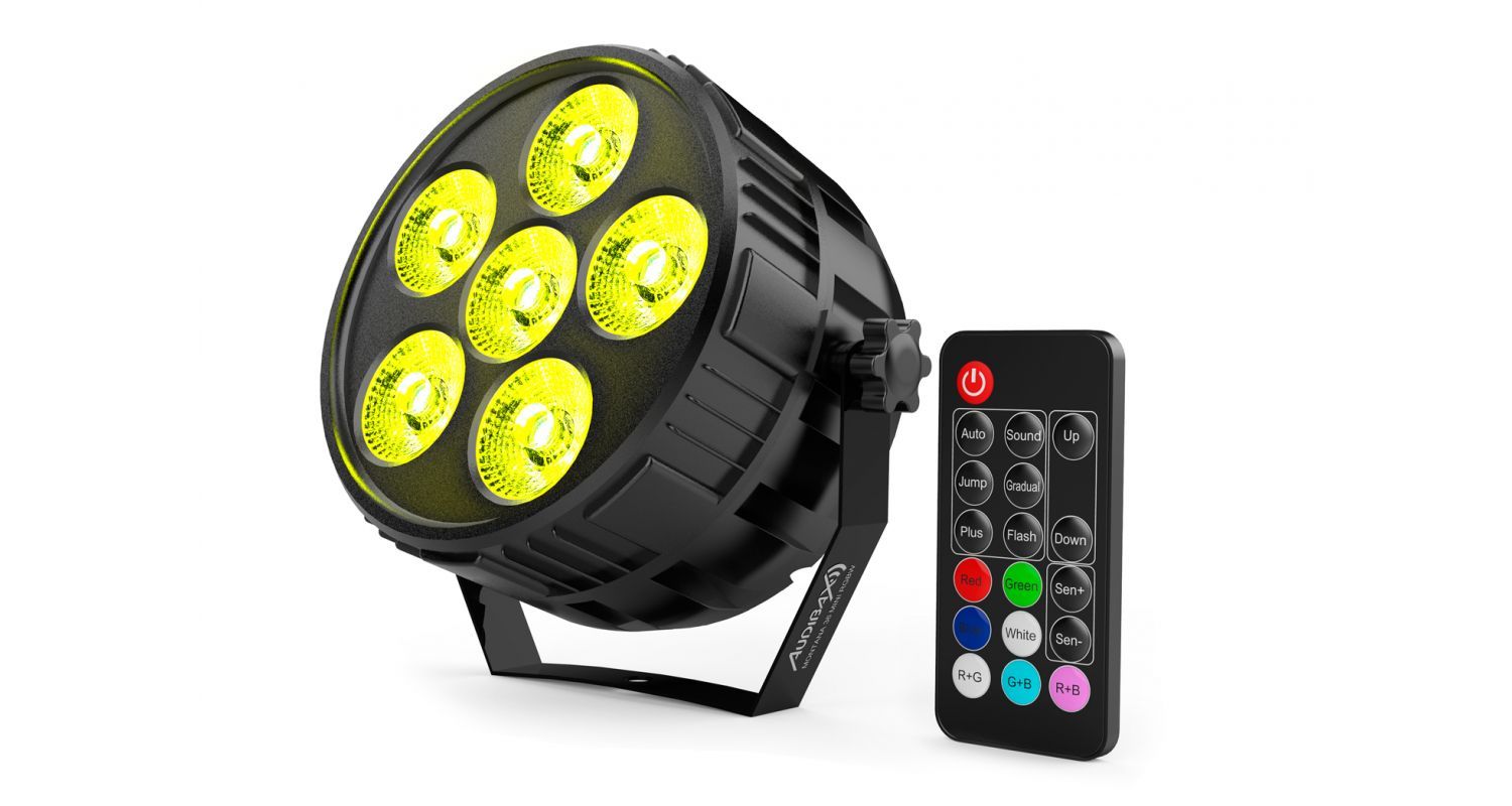 O Montana 36 Mini da Audibax é um refletor LED que possui 6 LEDs RGBW de 6W que fornecem potência suficiente para animar qualquer festa ou evento. É um 4 em 1, o que indica que cada LED dá as 4 cores disponíveis (vermelho, verde, azul e branco). É controlado em modo autónomo com o telecomando fornecido que permite regular as cores, bem como alterar facilmente o modo de funcionamento. Destaca-se por ser um produto leve e muito fácil de montar e colocar.