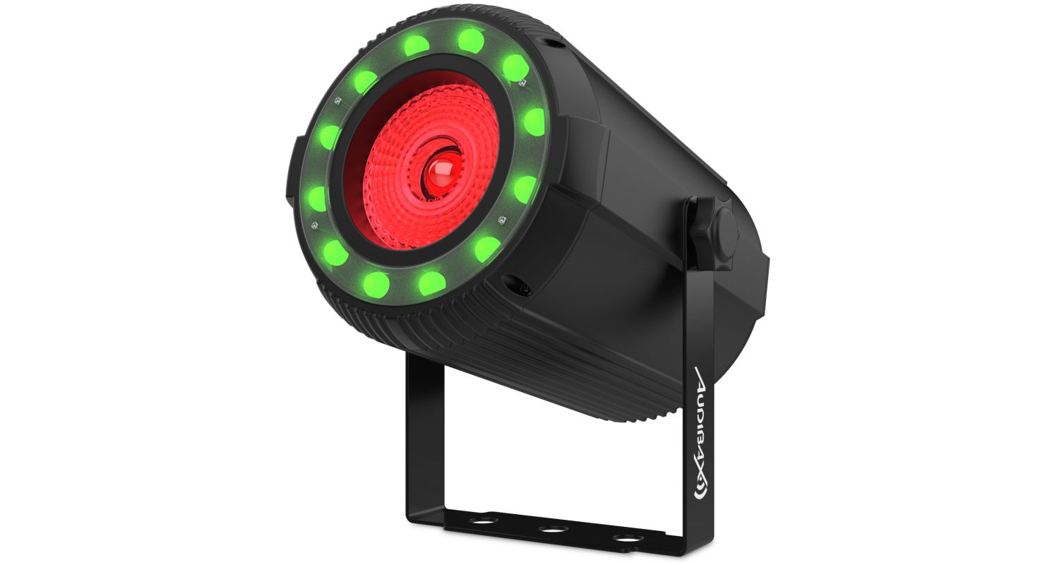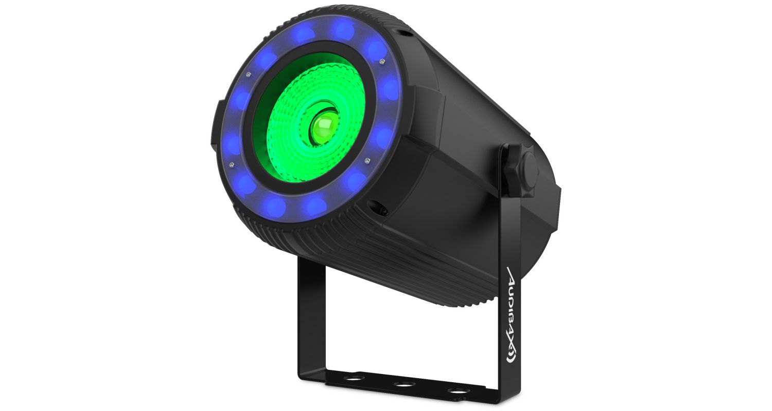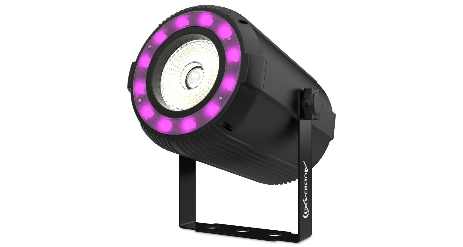 Nosso refletor de feixe par Oregon 40 RGBW é composto por uma lente de luz COB 4 em 1 de 40W, que junto com suas 12 luzes LED de efeito RGB distribuídas ao redor da lente, darão origem a uma fantástica experiência de iluminação.