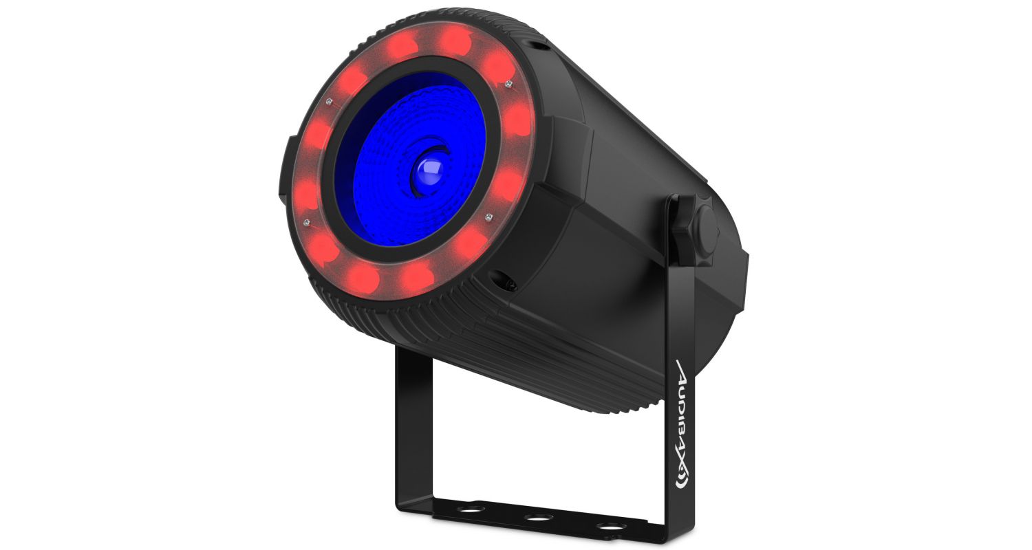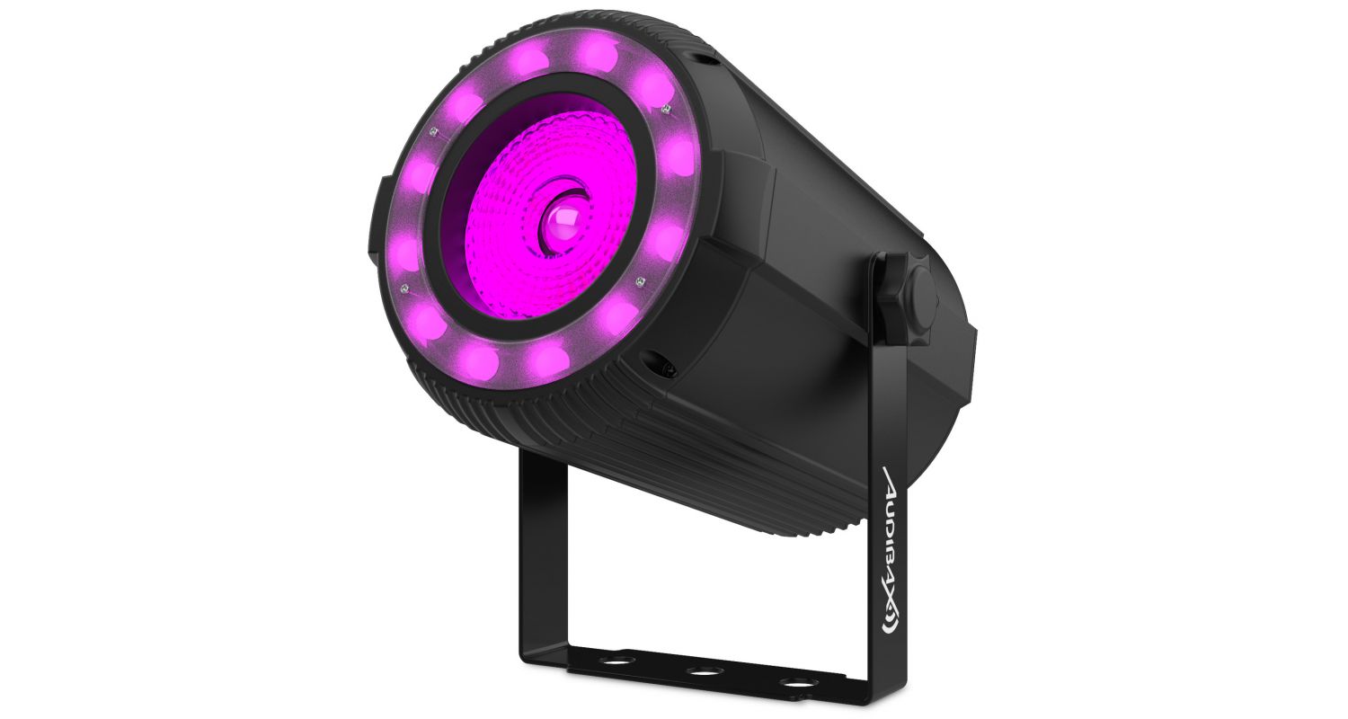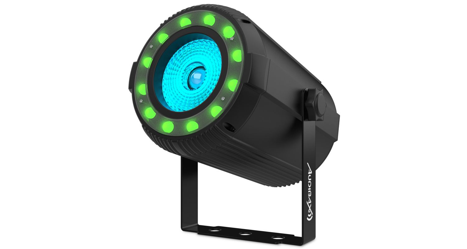 Nosso refletor de feixe par Oregon 40 RGBW é composto por uma lente de luz COB 4 em 1 de 40W, que junto com suas 12 luzes LED de efeito RGB distribuídas ao redor da lente, darão origem a uma fantástica experiência de iluminação.