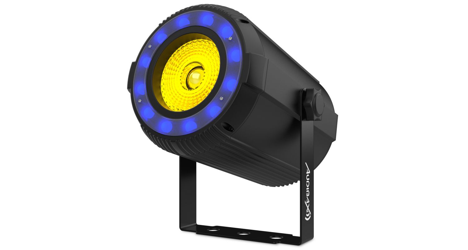 • O Audibax Oregon 40 RGBW é um refletor de feixe par com efeito halo RGBW, que emite uma poderosa fonte de luz LED, gerando diferentes combinações de cores.