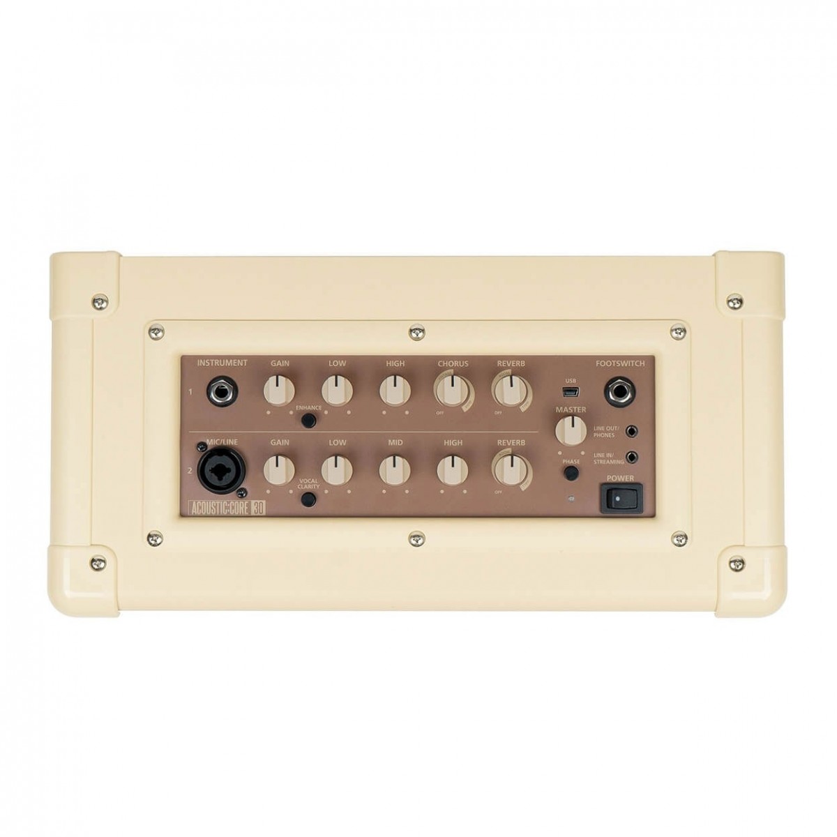 O Pretostar ACOUSTIC:CORE 30 Amplificador está aqui para fazer qualquer cantor/compositor actuar como um profissional. Quer esteja a transmitir aos seus fãs nos meios de comunicação social, a impressionar o público numa noite de microfone aberto, ou apenas a ter uma improvisação no quarto, o Acoustic CORE 30 pode fazer tudo isso. Equipado com capacidades de transmissão TRRS, o CORE 30 permite-lhe tocar na web com detalhes cristalinos e uma fidelidade espantosa.