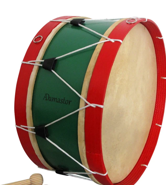 • O Bombo Tradicional Adamastor Nº6 45cm Vermelho/Aro Verde é um instrumento de fabrico artesanal português, conhecido pela sua construção tradicional e boa relação qualidade/preço.
