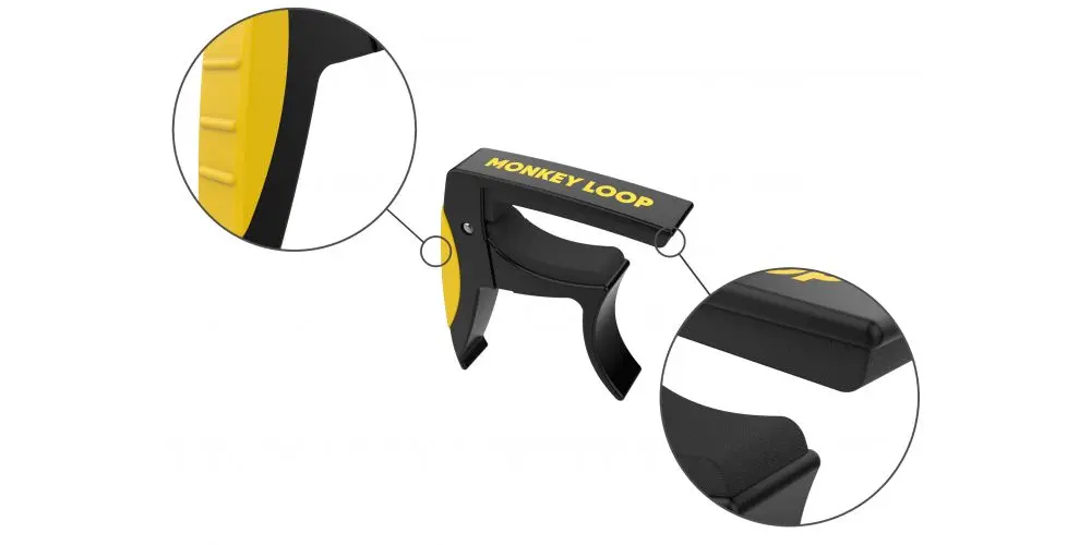 • O Monkey Loop Prime Capo A/E é um capotraste para violões e guitarras. Seu design levemente curvado permite cobrir perfeitamente todas as cordas com pressão uniforme, proporcionando uma afinação precisa ao longo das cordas. Possui uma borracha protetora para evitar arranhões no braço e uma empunhadura de borracha para facilitar o uso.