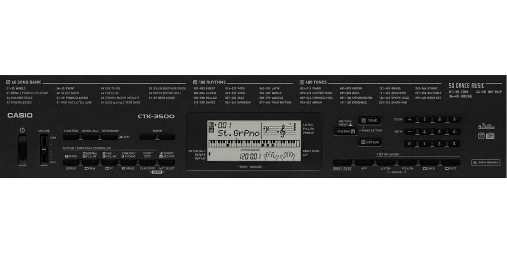 A função avançada de Acompanhamento Automático dá acesso a uma vasta coleção de ritmos étnicos de todo o mundo, com ênfase especial em ritmos de origem latina.
