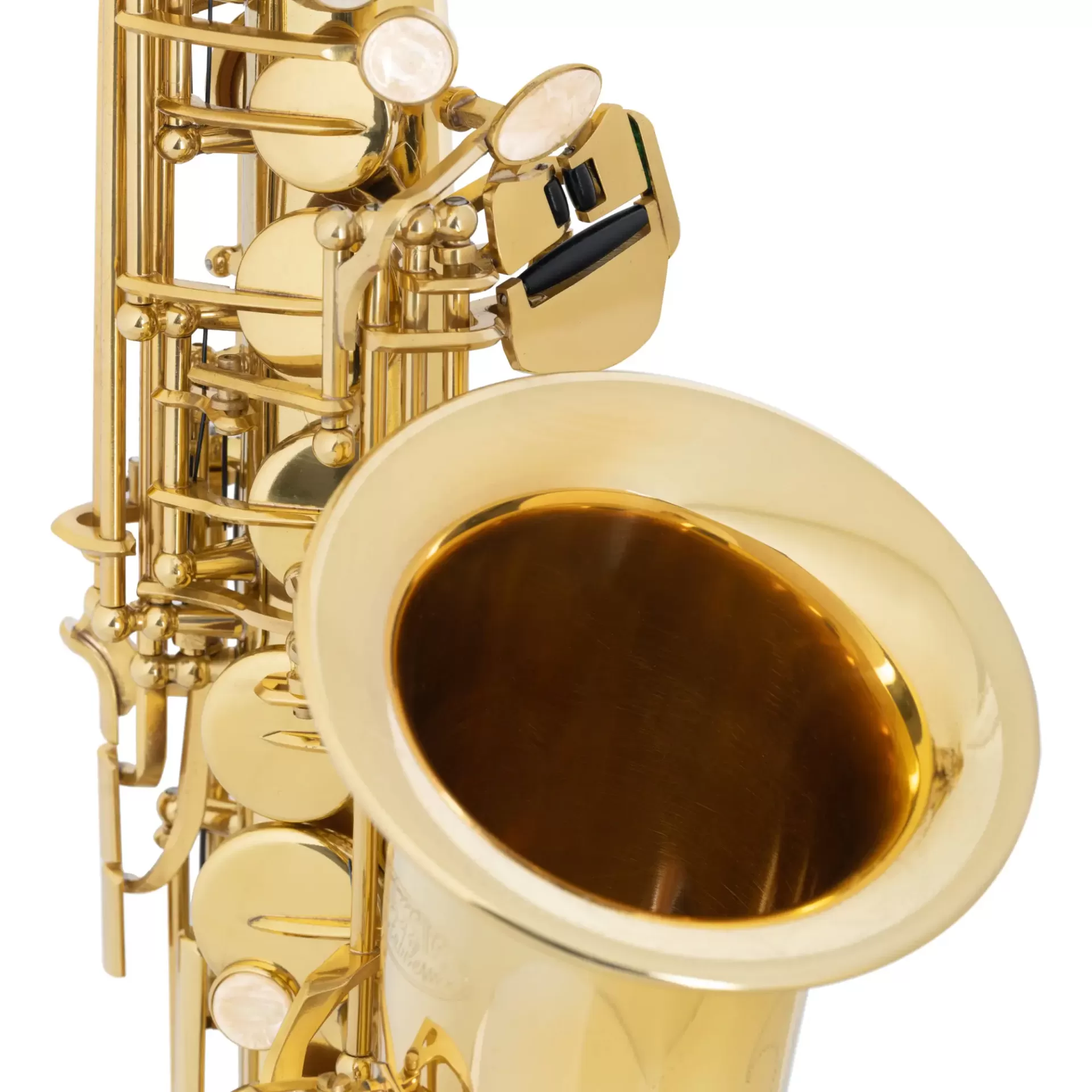 - Saxofone alto em latão, lacado transparente, tonalidade Fá# agudo