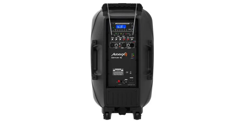 Caixa de som portátil DENVER Combo PORT15 VHF com rodas, 15" e 250 W, com bateria e 2 microfones sem fio