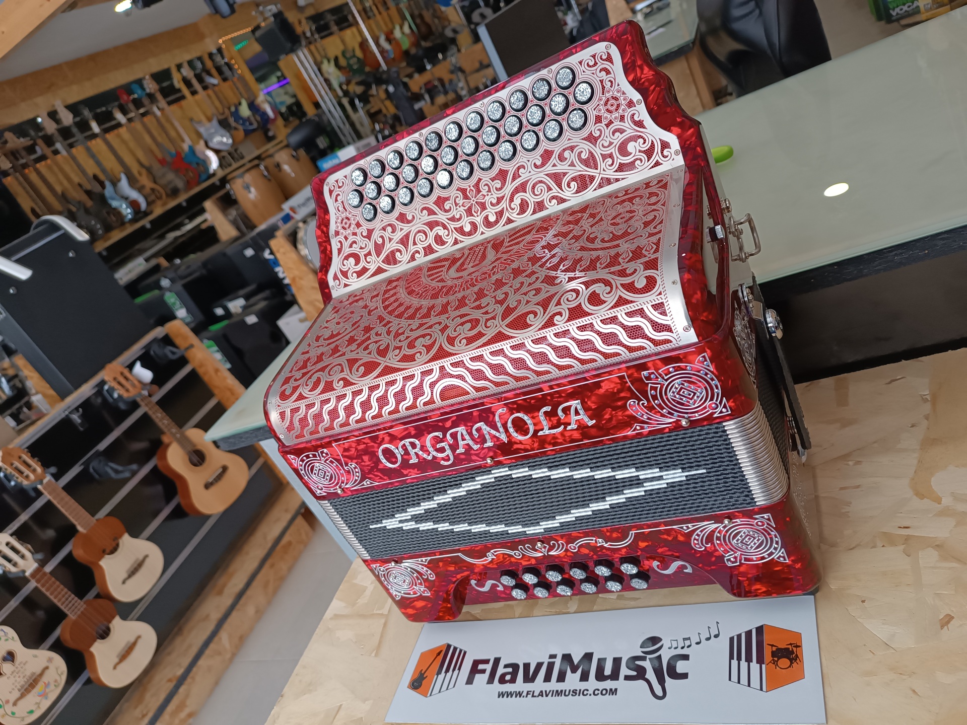 Home CONCERTINAS Concertina ORGANOLA Super RED de Luxo - Tom FA Concertina ORGANOLA Super RED de Luxo - Tom FA 0 unidades em stock | SKU: INSCOSDLXRED 2.800,00 € Desconto de %. O produto encontra-se sem stock. Adicionar à wishlist Concertina ORGANOLA Super de Luxo RED Vozes em bronze Modelo especial com vozes à mão em bronze Tonalidade FA Marca ORGANOLA Características Partilhar