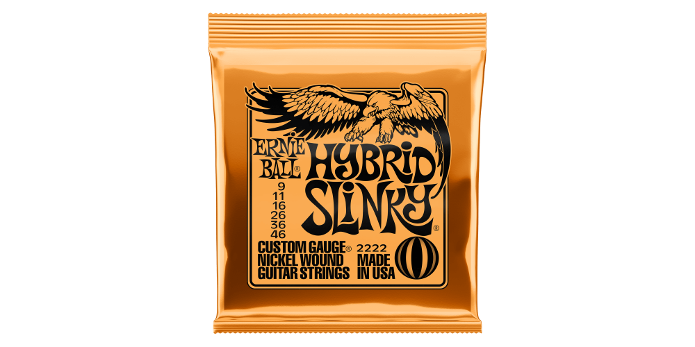 JOGO DE CORDAS  CALIBRE .009.011.016.026.036.046. AS CORDAS DA ERNIE BALL 2222 HYBRID SLINKY SÃO UMA ELEIÇÃO PERFEITA PARA QUEM BUSCA UMA COMBINAÇÃO ENTRE AS SUPER E REGULAR SLINKY.