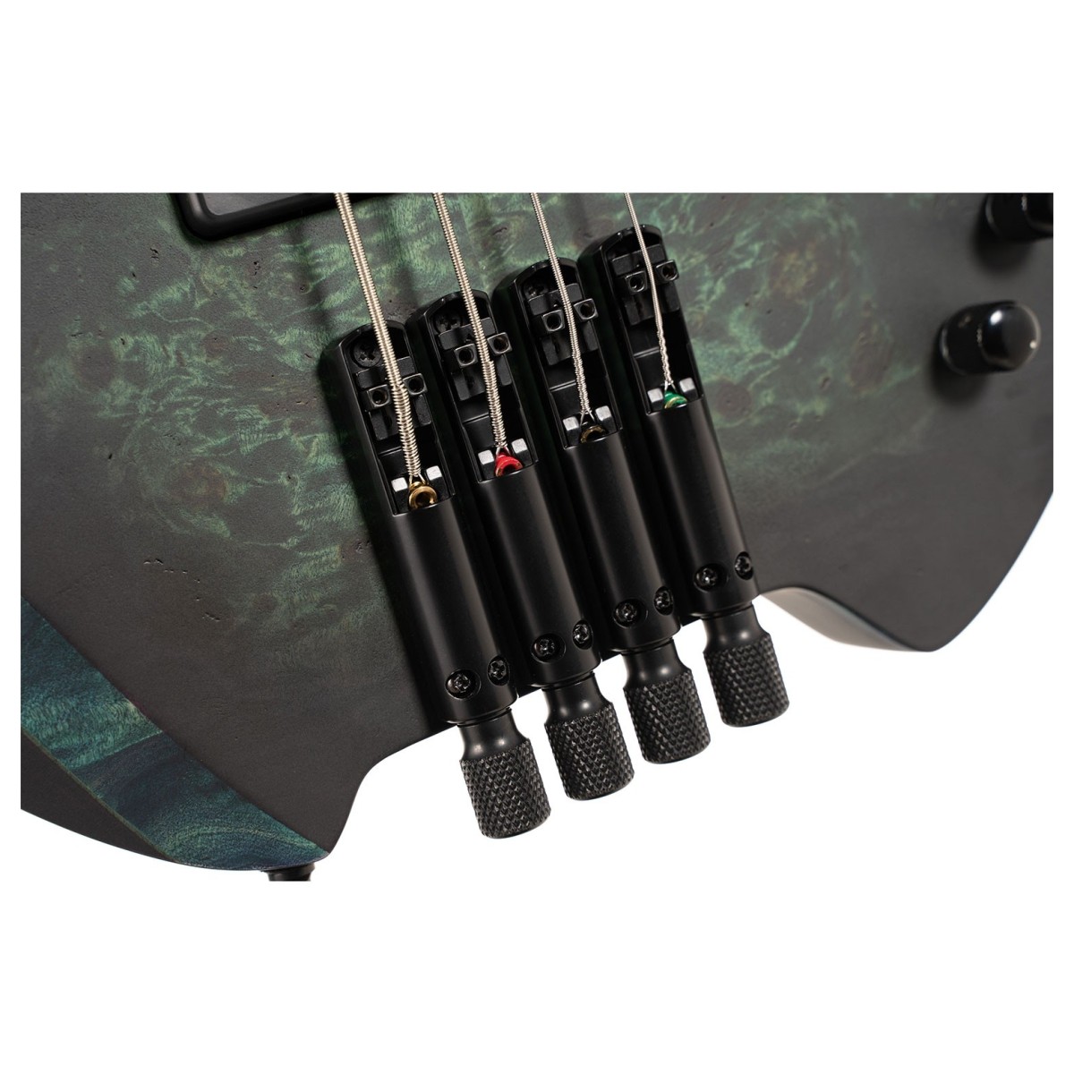 O Space 4 está equipado com captadores Bartolini® MK-1 e um equalizador ativo de 3 bandas, proporcionando poderosas capacidades de modelação de tom. Estes pickups são conhecidos pelos seus graves quentes, médios articulados e agudos brilhantes, tornando-os numa escolha versátil para uma variedade de estilos. O volume principal push/pull permite-lhe alternar facilmente entre os modos ativo e passivo, proporcionando-lhe uma maior flexibilidade na definição do seu som. Um controlo de mistura permite-lhe misturar os pickups de acordo com a sua preferência, enquanto os botões dedicados de agudos, médios e graves ajudam a afinar o seu som. Graves profundos e potentes para rock e funk ou um tom brilhante e cortante para jazz e fusion- o Space 4 adapta-se ao seu estilo sem esforço.Hardware sem cabeça concebido com precisão