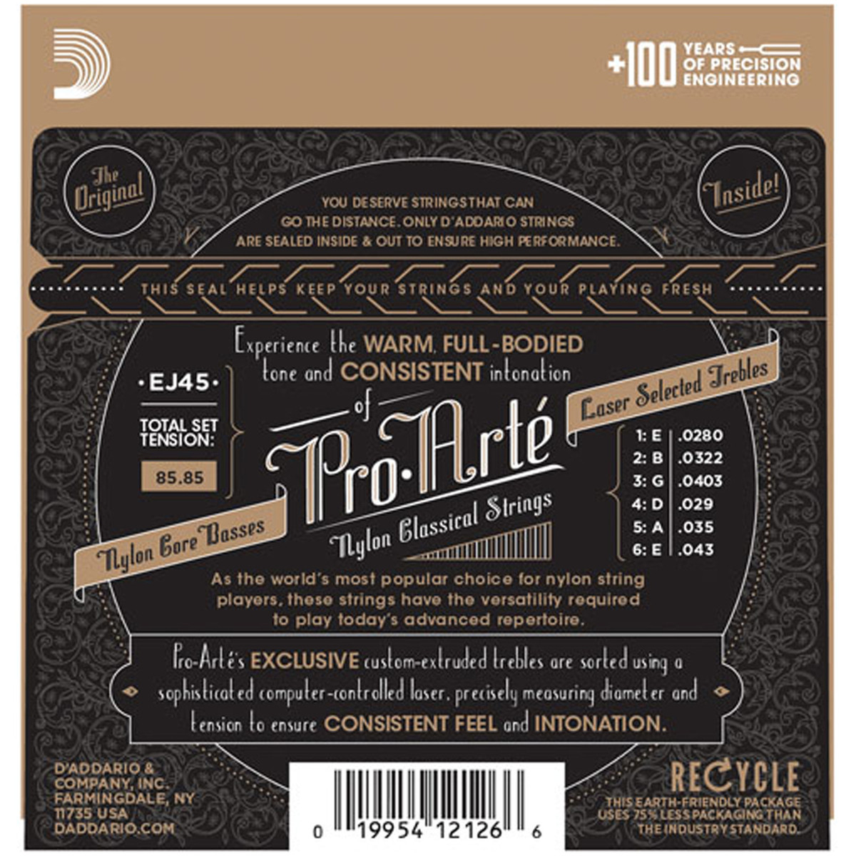 Os baixos Pro-Arte são enrolados com cobre folheado a prata num núcleo de nylon multifilamento para um tom consistente e quente, mas com projeção. O seu design semipolido reduz o ruído de fricção ao mínimo e, com embalagem ecologicamente correta e resistente à ferrugem, os D'Addario EJ45s são ótimos para o seu tom e para o planeta.