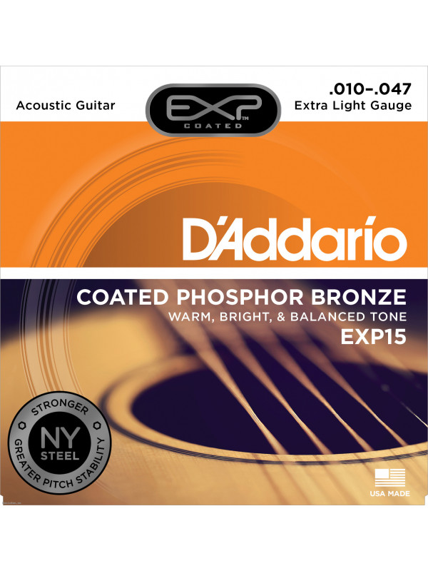 D'Addario EXP15 Coated Phosphor Bronze Acoustic Guitar Strings, Extra Light, 10-47