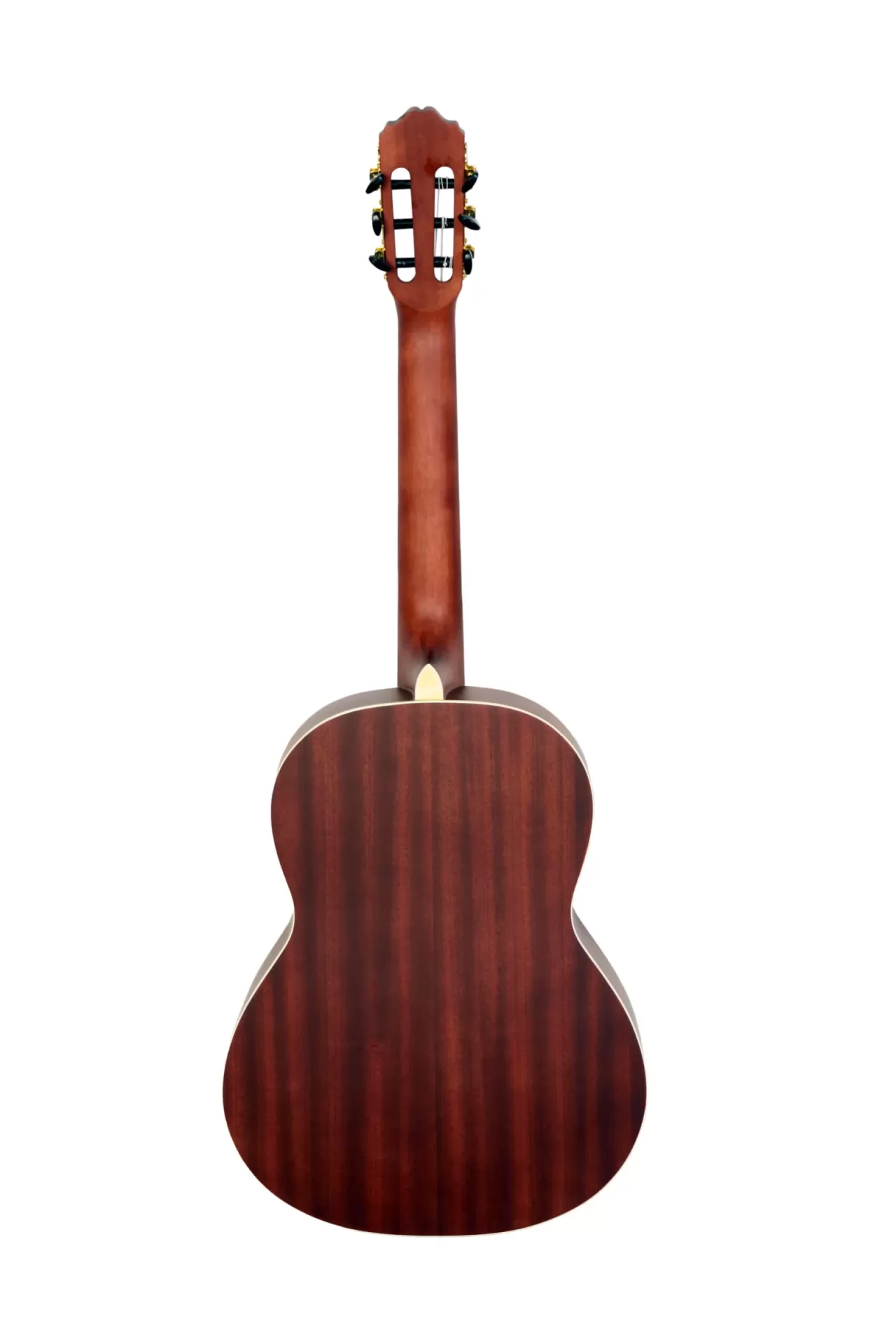 • Guitarra Clássica em madeira natural, desenvolvida para uma iniciação de conservatório.  Cuidadosamente elaborada possui um timbre profundo e equilibrado que a torna uma escolha perfeita. Com um acabamento e acessórios de alta qualidade este modelo apresenta um visual elegante e um som potente.