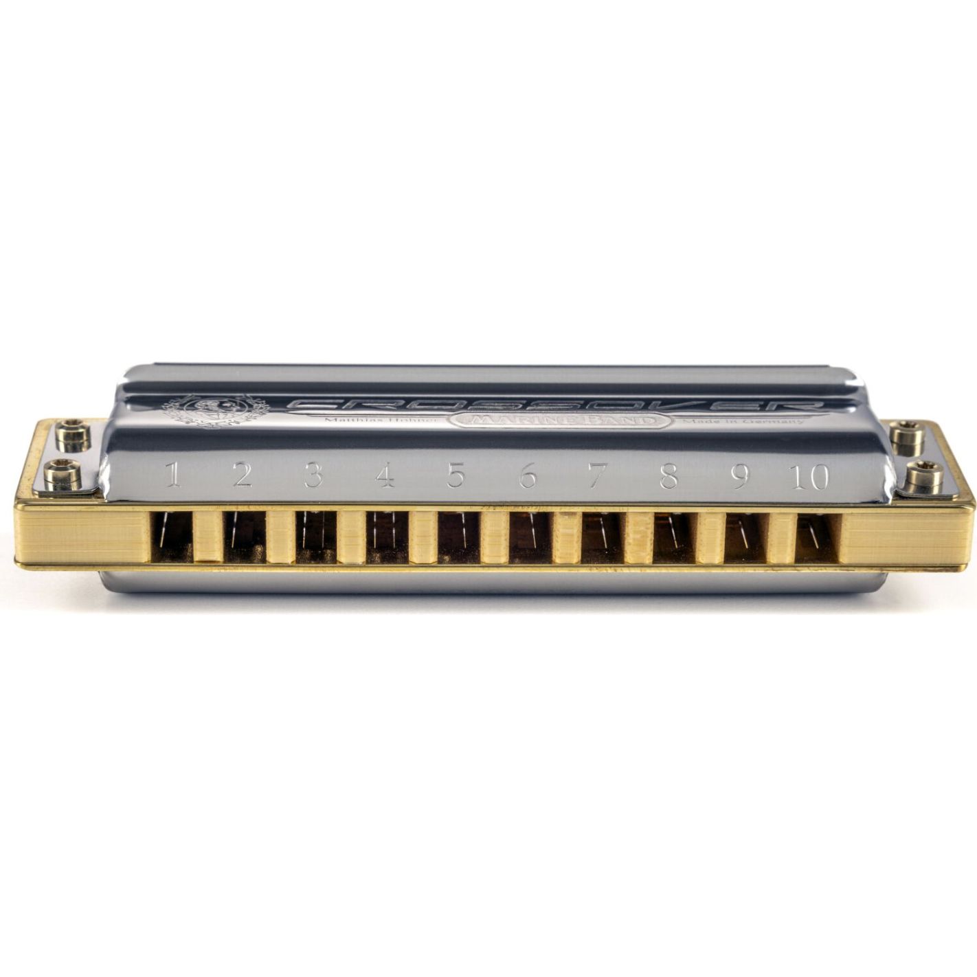• A Hohner Marine Band Crossover é uma harmónica de 10 orifícios (diatónica) fabricada na Alemanha, conhecida pela sua construção de alta qualidade e design aprimorado para conforto e desempenho.