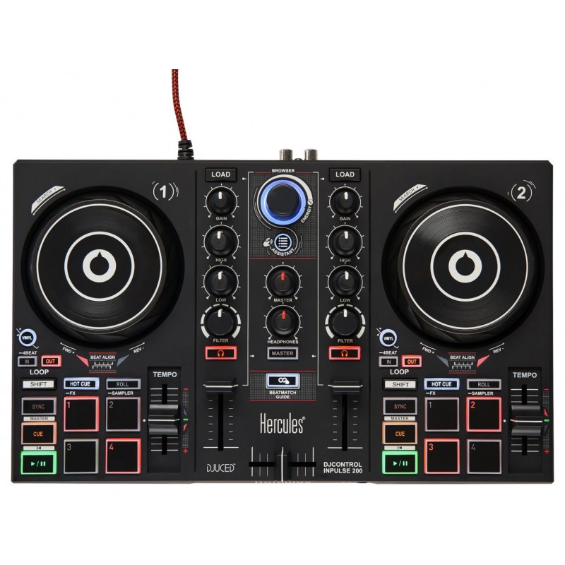 A Hercules introduz a primeira gama de sempre de controladores de DJing para aprender realmente a misturar. Treine o seu ouvido e aprenda a dominar o beatmatching manualmente com o DJControl Inpulse 200. O seu design fácil de utilizar e o conforto fazem dele o controlador perfeito para começar com o DJing. Controlado pelo software DJUCED®, o DJControl Inpulse 200 oferece novas funcionalidades para o ajudar a aprender: guias luminosos no controlador para aprender os movimentos certos, o Intelligent Music Assistant (IMA) para o ajudar a escolher as melhores músicas para tocar, a funcionalidade ENERGY para gerir o ambiente da festa e a DJ Academy com os seus tutoriais em vídeo integrados. Tem tudo o que precisa para se tornar um DJ.