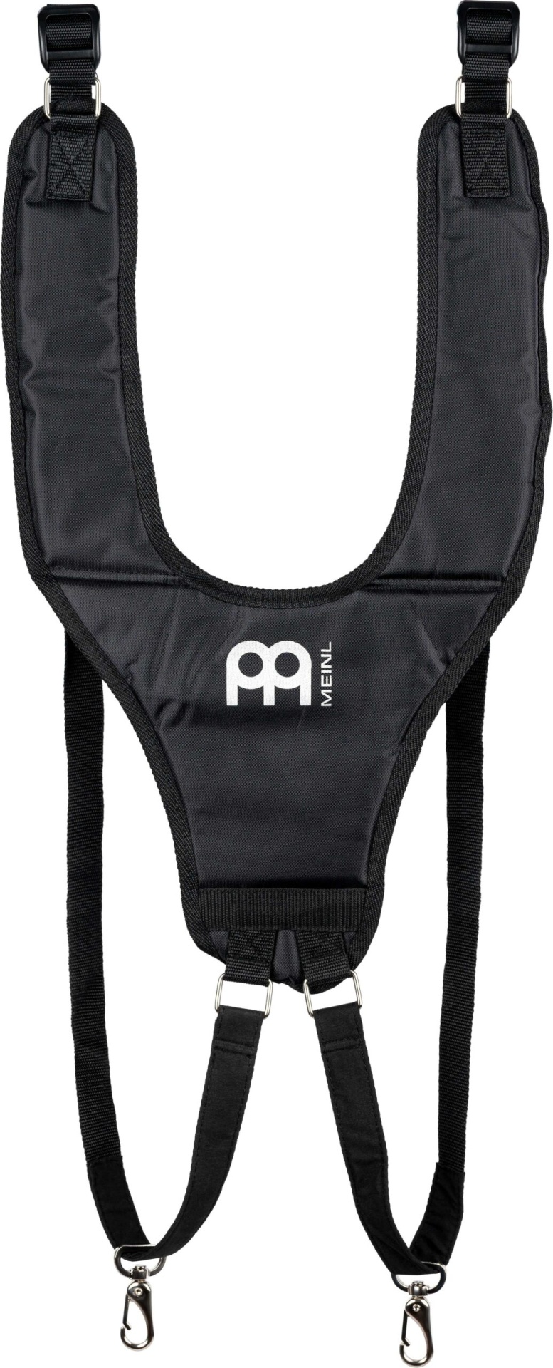 • Correia djembê em nylon preto. O arnês Meinl foi projetado para colocar com conforto e segurança qualquer djembe ou outro tambor em uma posição perfeita para ser tocado. Você pode ajustar o comprimento e o acolchoamento das tiras de náilon resistentes para um posicionamento ideal.