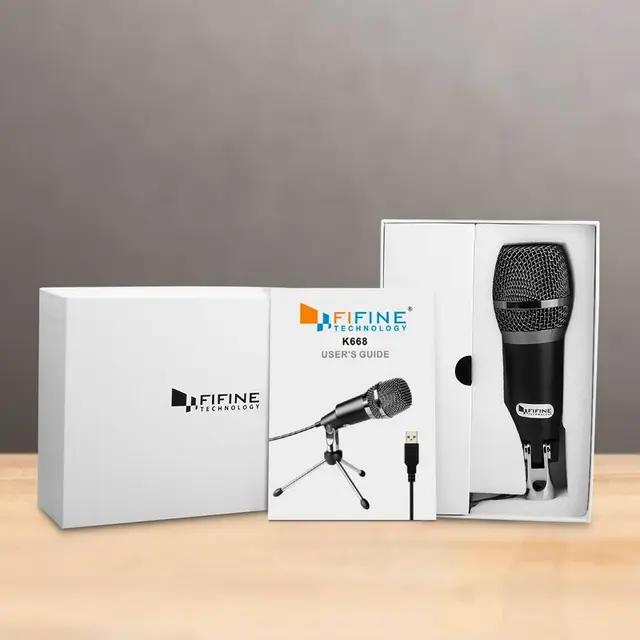 • O novo microfone Fifine K668 é um microfone USB perfeito para quem quer começar a fazer podcasts/transmissões ao vivo ou para realizar videochamadas de qualidade.