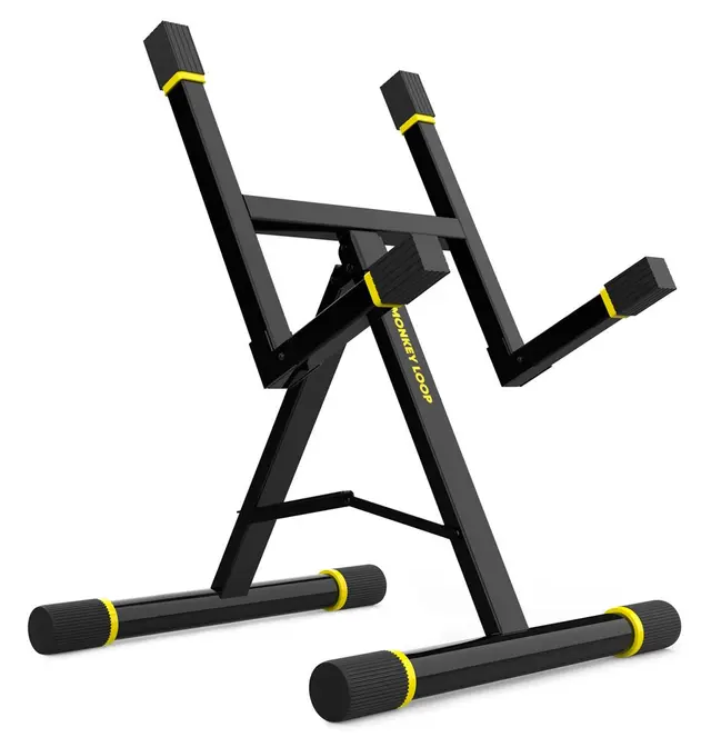 Pés de borracha ajustáveis proporcionam estabilidade em superfícies irregulares, e o suporte se dobra para facilitar o transporte e o armazenamento. Ideal para residências, escolas, estúdios e palcos, o Monkey Loop Amp Prime é um excelente complemento para pequenos amplificadores combo e caixas acústicas.