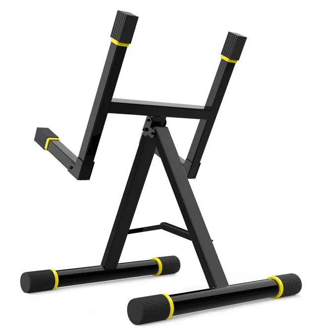 Construção em aço resistente Design compacto Dobrável para transporte e armazenamento O suporte levanta o amplificador até 28 cm Capacidade: 18 kg Peso do suporte: 2,2 kg