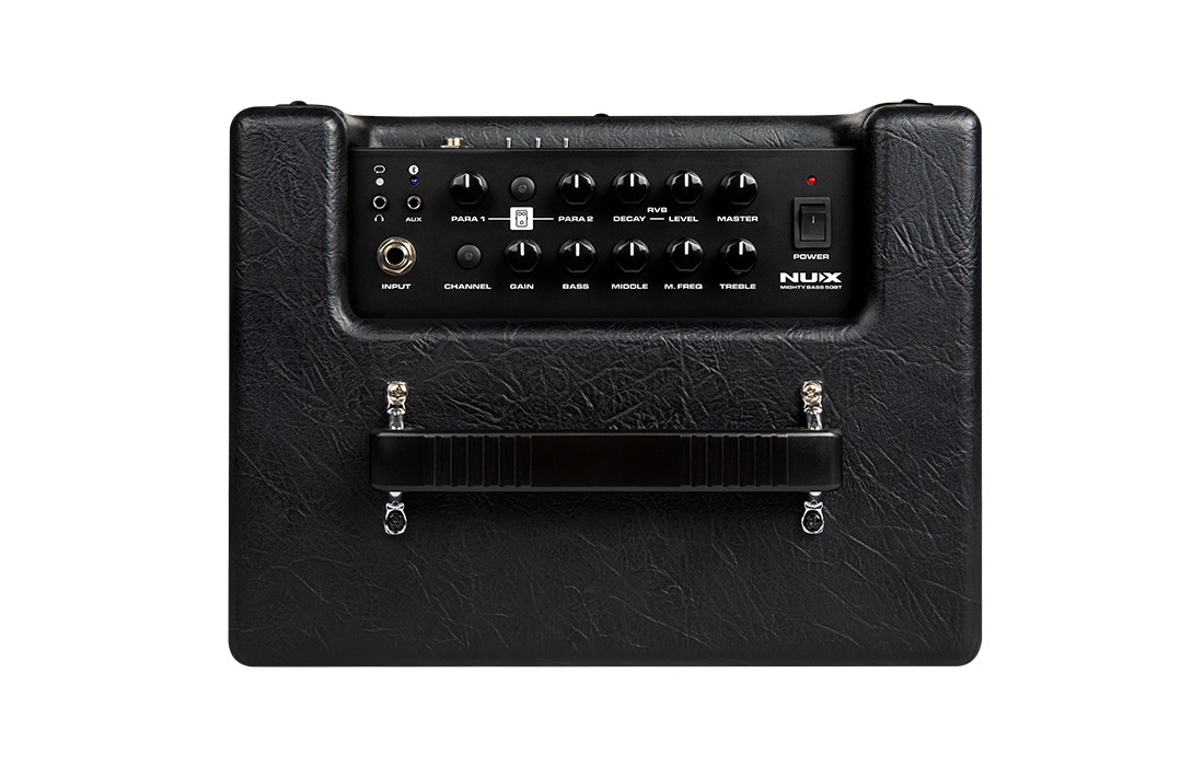 • NUX Mighty Bass 50BT é um amplificador de baixo versátil para praticar, ensaiar e gravar. Ele equipa um alto-falante premium de 6,5" e é alimentado por um amplificador de potência D clássico de 50 watts. Isso torna o amplificador compacto e portátil. Você pode usá-lo no quarto, mesmo para um pequeno clube