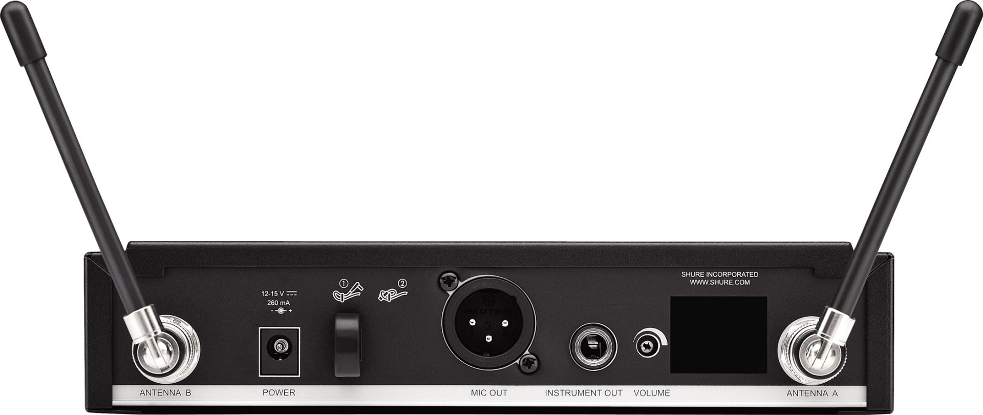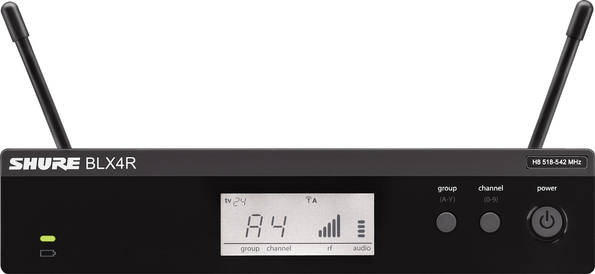 • Receptor analógico sem fio para montagem em rack com linearidade e resposta de frequência aprimoradas, com varredura de grupo e canal para fácil configuração.