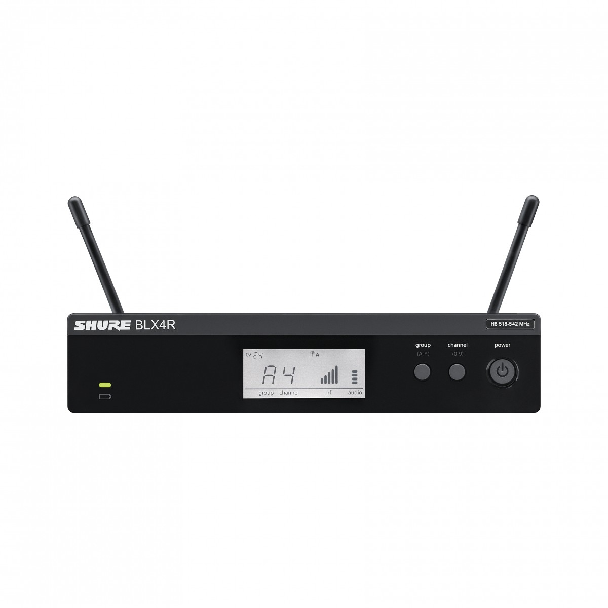 O receptor BLX4R é fornecido com um kit de montagem em rack e antenas amovíveis para uma distribuição rápida. O cabo WA302 possui um conector jack padrão de 3,5" para um mini conector de 4 pinos e é compatível com todos os transmissores bodypack Shure. A gama de sistemas BLX orgulha-se do som profissional que é fácil e eficiente de configurar, dando-lhe a liberdade de actuar com qualidade.