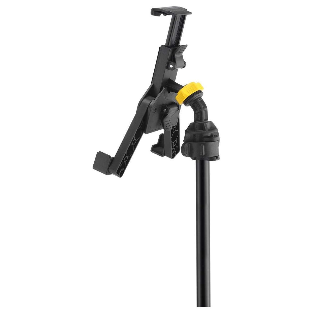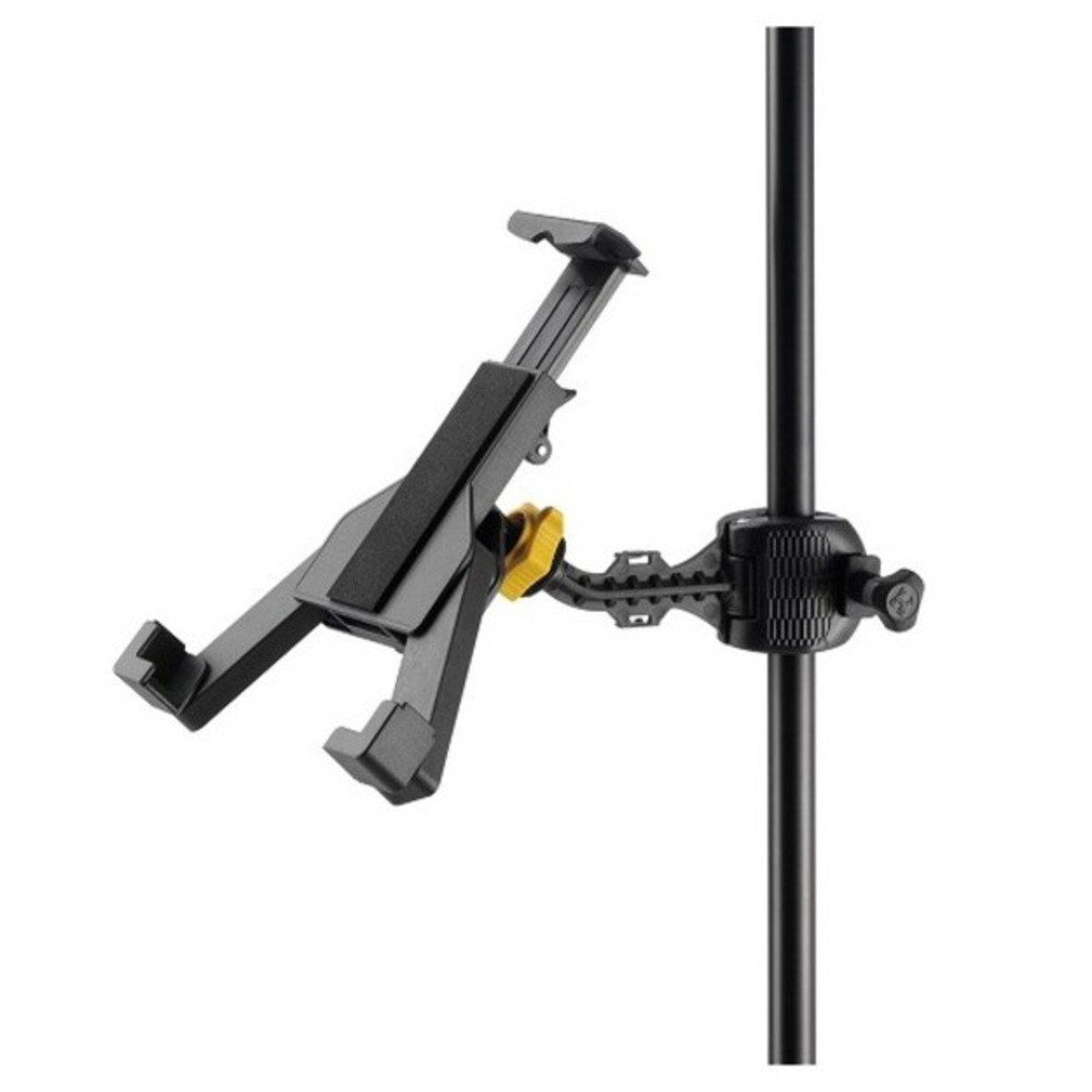 O suporte para tablet Ipad Tabgrab Hercules DG305B profissional mantém o seu dispositivo Ipad ou tablet na posição vertical quando está a utilizá-lo para o ajudar a tocar. Quer esteja a utilizar uma aplicação para sintonizar a sua guitarra, ou apenas a tocar junto com uma música, o suporte irá proteger o seu dispositivo na posição que escolher. O design de articulação esférica de 360 graus permite ajustar a largura, a altura e a inclinação do dispositivo. O suporte ajustável de 3 vias é dobrado com facilidade em um tamanho mínimo e compacto, facilitando o transte de um local para outro. O grampo de uma peça totalmente coberto é composto tubos redondos de 15,8-25,4 mm e tubos quadrados de 19 mm. Há também uma tampa de sucção incluída se você colocar o suporte em uma mesa ou parede.