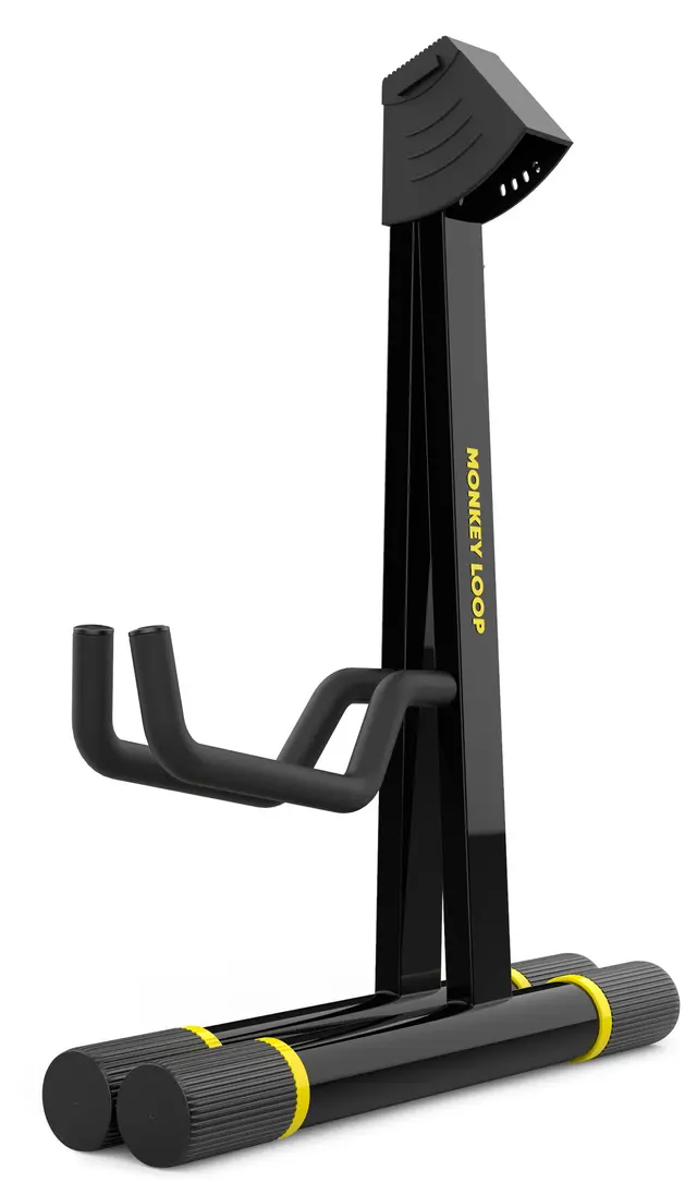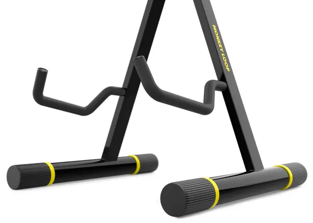 • O  Monkey Loop Prime 02  é um suporte de chão para violões acústicos ou clássicos. Feito de aço ultrarresistente, é muito leve e fácil de transportar. A superfície onde o violão repousa é feita de borracha para evitar arranhões ou desgastes. Ele pode ser completamente dobrado, facilitando o armazenamento em praticamente qualquer lugar.