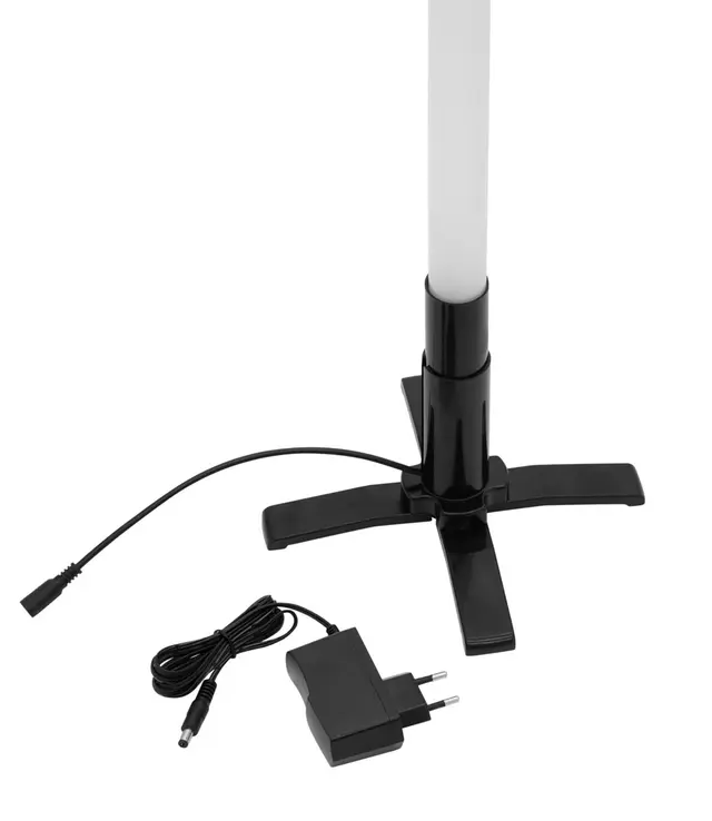 - Tubo LED colorido com suporte de chão e controle remoto infravermelho.