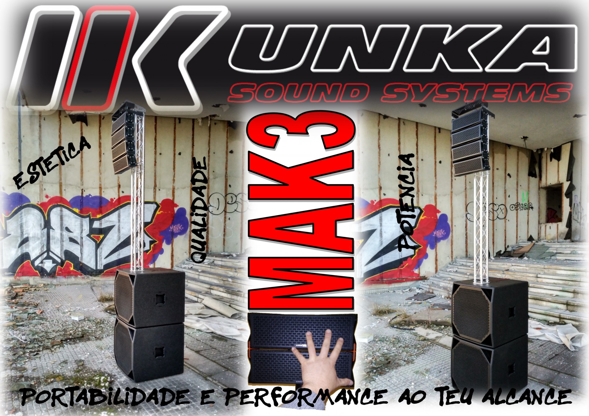 Home LINE ARRAY ALTA GAMA UNKA SOUND SYSTEMS MAK3 S18 UNKA SOUND SYSTEMS MAK3 S18 SKU: SOMMAK3S18 7.499,00 € Desconto de %. IVA incluído. Comprar Contactar Adicionar à wishlist O MELHOR SISTEMA PA PORTÁTIL DO MERCADO! Sem concorrência!!! Apenas 50 KG DE PESO TOTAL E 2800 W Possibilidade de configuração line array Entra num novo patamar de potência, qualidade e baixo peso....! Simplesmente de outro mundo. Sistema composto por 2 subs de 18'', com apenas 22 kg cada e dois satélites de 5kg cada com 6x3" Os teus olhos não vão acreditar no que os teus ouvidos ouvem, nem os teus ouvidos vão acreditar no que os teus olhos vêem. Tamanho minusculo SUB 18 - 50x50x50 cm - 22KG SATÉLITES - 26X10X8 CM - 2,5 KG CADA BARRA OPCIONAIS: CONFIGURAÇÃO LINE ARRAY POSSIVEL COM TRUSS EM ALUMÍNIO, SISTEMA PENDURAR, SACOS E LONAS PARA TRANSPORTE. Marca Unka Sound Ver vídeo Partilhar